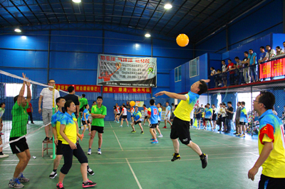 随着主裁的一声哨响,气排球比赛正式开始。本次气排球比赛以淘汰赛形式进行,第一轮由“集团领导” 对阵“嘉通无敌队”、“盛景荣队”对阵“开心联队”、“克惧队”对阵“万方物业队”、“勇港队”对阵 “盛青队”,两方的队员便开始了龙争虎斗、各施绝技。各队的参赛队员都以昂扬的斗志迎接比赛,发球、起跳、拦网、扣球……各队比分在裁判员的一次次翻牌中发生变化。最后,“勇港队”、“嘉通无敌队”、“盛景荣队”、“万方物业队”成为4强队伍,进入半决赛。