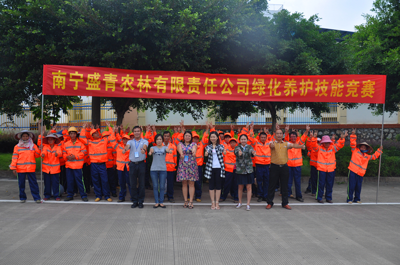 715日上午9时许,南宁江南区同兴路两旁阳光热辣,机器的轰鸣声此起彼伏,70多名身着橘黄色衣服的绿化养护工人上下忙得汗流浃背:这里正在举行盛青公司首届绿化养护技能竞赛。