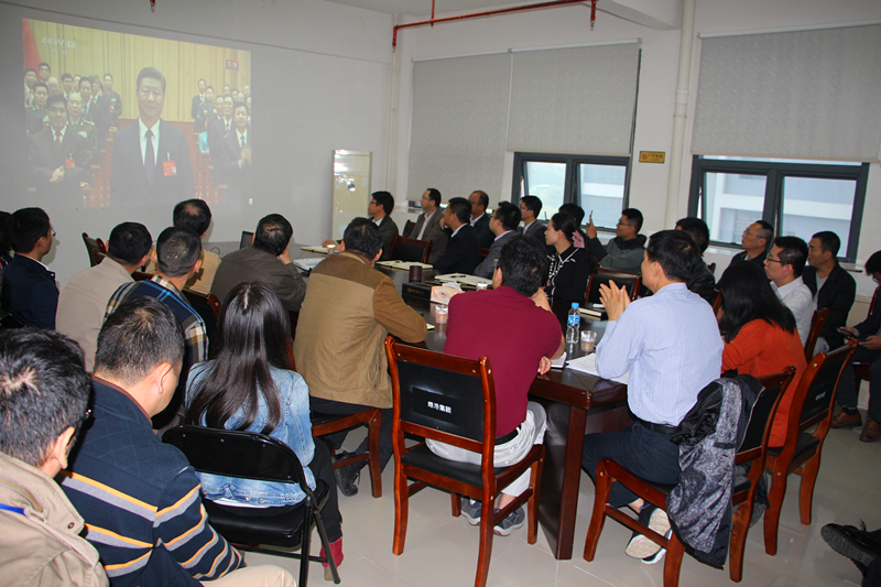 金秋十月,南国绿城花正艳。10月18日,党的十九大在北京胜利开幕。当日上午9时,开云(中国)党委组织集团公司领导班子全体成员、董事长助理、总经理助理,各部门、各子公司负责人及公司全体党员,在丽汇大厦415会议室集中收看中国共产党第十九次全国代表大会开幕会直播盛况。全体与会人员怀着无比激动的心情,聚精会神,静静聆听,认真记录,不时爆发出热烈的掌声!在长达三个半小时的收看过程中,整个会场始终保持庄严、肃穆、紧张、热烈的良好氛围。