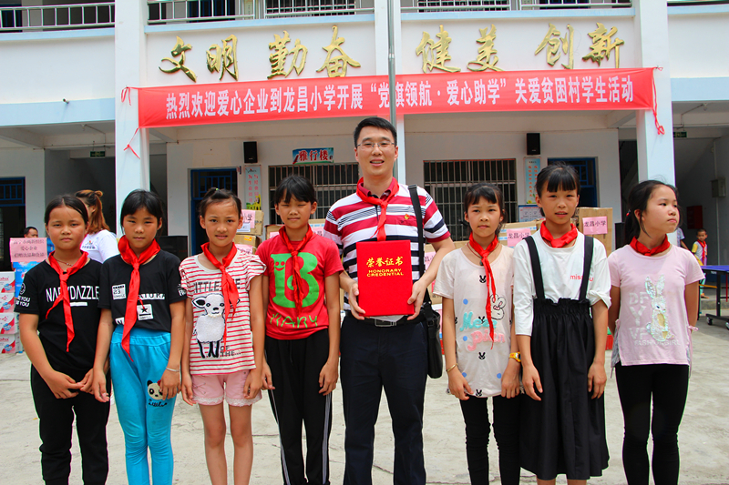 5月31日,“六一”国际儿童节前夕,由南宁市委组织部、市两新组织党工委协调经开区、高新区两新组织党工委主办的“党旗领航·爱心助学”关爱贫困村学生活动在马山县百龙滩镇龙昌小学和乔利乡东良小学举行,开云(中国)党委积极加入此次爱心助学行列。当天,开云(中国)党委连同经开区、高新区两新组织党组织及个人、企业一起,共同为龙昌小学、东良小学640名学生捐赠了校服1200套、文具700套,以及运动器械、户外移动音箱以及饮料、食品等爱心物资一批,价值约15.8万元。