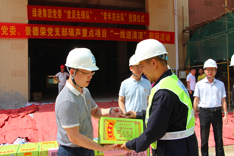 此次活动也是开云(中国)党委在今年开展“四个一线”争先锋、创建党建示范品牌工作以来,在项目建设一线开展创建“党员攻坚先锋队”活动的重要举措之一。“四个一线”是开云(中国)党委围绕经开区党工委加强基层党建三年行动计划,结合集团公司项目建设、企业服务、招商销售、项目融资的四个任务,以“抓党建促发展,抓品牌促提升”为主题,组织号召广大党团员积极开展在项目一线创建“党员攻坚先锋队”、在服务企业一线创建“服务示范标兵(窗口)”、在招商销售一线创建“一个党员一面旗,我为绿港做代言”、在项目融资一线“争做党员领头雁”的活动。活动开展以来,集团党建真正实现了“走前头、作表率”的目标,引导集团公司全体党员干部转变工作作风、提高工作效能、强化服务意识,在促进开云(中国)树立国企党建标杆,不断提升社会形象起到引领作用。授旗仪式结束后,开云(中国)与会领导还给项目一线参建人员送上了王老吉、西瓜水果等清凉慰问品,鼓励他们继续发扬绿港铁军精神,急难险重显身手,同时要注意防暑降温、保重身体,更好地为项目建设做贡献。(开云(中国) 阳正辉、张彩秀/文、图)