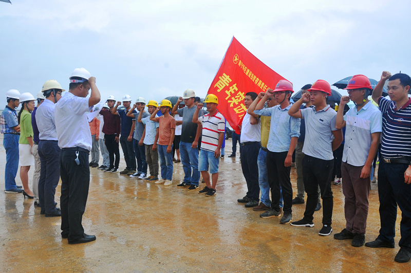 当天,细雨蒙蒙,开云(中国)党委书记、董事长、总经理龚国强在项目现场给参建党员授予了“党员先锋队”旗帜,给参建团员青年授予了“青年突击队”旗帜,开云(中国)副总经理、工会主席黄丽琴给吴圩空港经济区重点项目推进组授予了“工人先锋号”锦旗,激励广大党员干部青年同志们要以强烈的政治责任感、立足本职岗位,充分发扬不怕吃苦、勇于负重,敢打硬仗、能打硬仗的“绿港铁军”优良传统,为吴圩空港经济区项目建设做贡献。