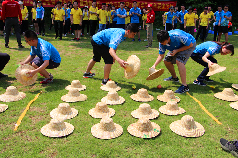 活动当天,队员们通过热身游戏、找朋友等趣味游戏拉近彼此的关系,提振精气神,开启了拓展训练。随后,全体人员被分成6个小分队,经过一番头脑风暴,“战狼队”“水鱼队”“老铁队”“烈火队”等各种有趣的团队名称随之而出,各支队伍斗志昂扬、蓄势待发。训练正式开始,在教官的指导下,各队员们充分发挥团队协作精神,积极参与、不怕吃苦、不畏艰难,在烈日炎炎下,在汗水与欢乐中,成功完成了“水果忍者”、“龟兔赛跑”、“魔力闯关”、“枕头大战”等一个又一个训练项目与挑战。