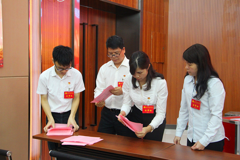 上午八点十分,大会全体工作人员提前到位,大会筹备会务组人员整齐地摆放好签到表、出席证、嘉宾证和列席证,做好迎接大会的准备。计票人、监票人会前碰头,明确分工任务。