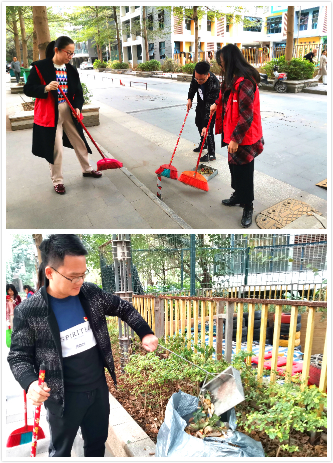 活动中,每位党员同志都热情高涨,不怕累、不怕脏,撸起袖子,干劲十足,在开展宣传的同时,还用扫帚、簸箕等清扫工具对小区公共地带的卫生死角进行了细致打扫,清理路面杂物和绿化带落叶,为社区营造良好的居住环境。大家分工明确,配合默契,积极发挥奉献服务精神,用实际行动为美化社区环境做出努力,为创造和谐稳定的社区环境贡献一份力量。