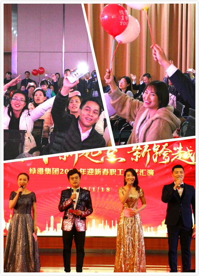 随后,集团总部喜庆欢腾的舞剧《鼠舞龙腾闹新春》拉开了开云(中国)2020年职工文艺汇演的序幕,集团领导班子,集团各部门、各子公司干部员工接连登场,以17个内容丰富、积极向上的文艺节目同贺新春。通过舞蹈、音乐情景剧、歌曲、小品、诗朗诵、文化展示等形式,充分展现绿港铁军勇于拼博、团结奋进的风采和广大职工团结上进的精神风貌。《绿港建设者》以铿锵有力的舞蹈,表现出奋战在经开区建设一线的绿港人攻难克艰的决心和担当的气魄;科巨公司带来的《大话西游之治理黑臭水体》则讲述了绿港铁军在打赢黑臭水体攻坚战中,挺身而出,争做攻坚排头兵的故事;集团营销管理中心的歌曲串烧、科巨公司《 We Will Rock You》、嘉通公司《上海滩》和荣鑫公司的《荣鑫似首歌》不仅让我们一睹国风、爵士风、上海滩和怀旧港风的风采,一句“绿港飞得更高”的高歌更是把全场气氛带到了最高点!舞蹈《芒种》、《桥边姑娘》和万方公司《溜溜的山寨溜溜的醉》是柔情万种,百转千回;小品《你有没有在乎过我的感受》、《家有儿女》取材日常生活,表达了家和百事兴的主题;九略公司《中华攒 瑰宝情》通过对中华传统文化的展示,激发了广大职工的文化自信;集团办公室、中港兴公司联合准备的节目《我们是一家人》通过手语舞蹈表现出集团公司团结一心,同事间真诚有爱的良好面貌,让大家沉浸在一片爱的海洋之中;嘉通公司的朗诵《青春万岁》则透过稚嫩的童声带大家重返美好的青葱岁月。各节目精彩纷呈,引得台下观众呼声连连。最后,节目表演在集团公司领导班子带来欢乐活泼的舞蹈《爱》中告一段落,现场四处洋溢着欢乐祥和的气氛。