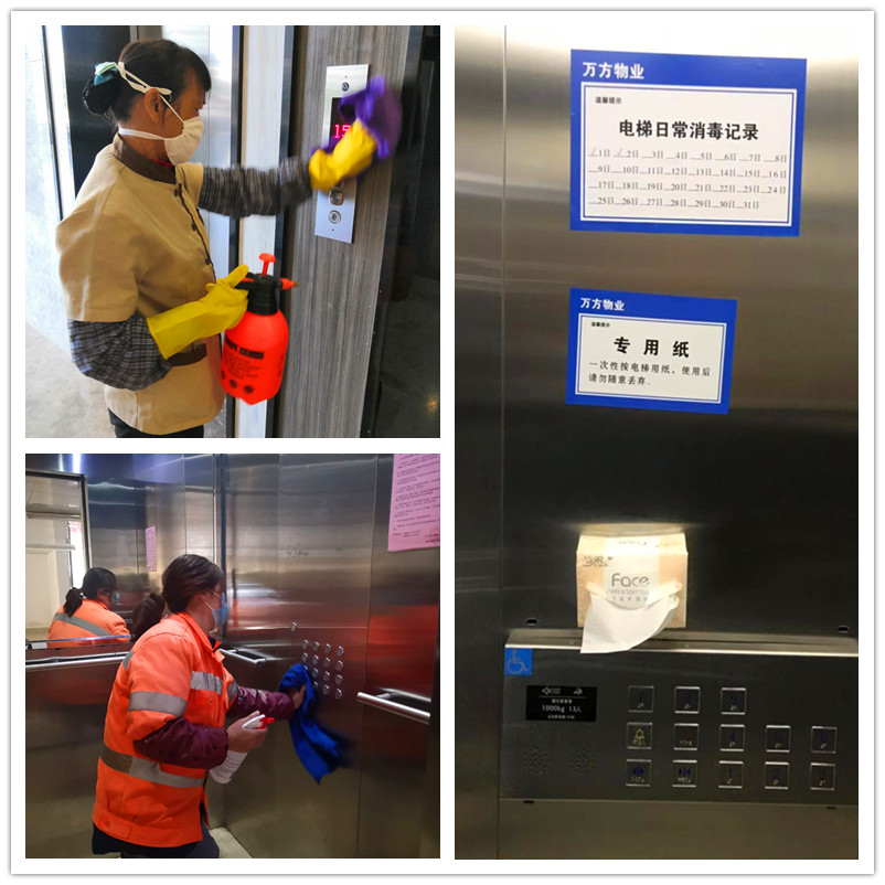 防疫物资到位后,万方公司于130日及时安排人员将物资下发到各服务项目,同时在接管的绿港·国际中心、丽汇工业园、创意产业园、金凯工业园、银凯孵化园、宏象工业园、现代工业园、吴圩新港家园等10余个项目全面开展疫情防控工作。由各项目主任带头领导,多措并举防控疫情。首先,对公厕、下水道、单元楼道、垃圾桶、绿植等容易滋生病菌的场所进行消毒,重点对人员接触频繁的电梯、公共通道的门把手、开关、按键、健身器材等位置进行每日1-2次的消毒灭菌工作。其次,严格落实园区进出人员及车辆的管理和登记,共在各园区设置定点体温检测10处,严格开展入园人员体温检测,并进行体温异常人员登记,除现场进行体温检测外,还在万方公众号小程序上推送各种防疫工作温馨提示,提醒业主注意防疫措施并配合体温监测。再次,设置废弃口罩回收点30个(每个园区视项目情况配2-3个点),回收废弃口罩,防止病毒逸散。最后,深入园区,做好业主和群众的疫情防治宣传,在各园区共悬挂疫情防控宣传横幅50条,将防护知识传播到各家各户,降低恐慌,为共同保障园区环境奠定良好的群众基础。