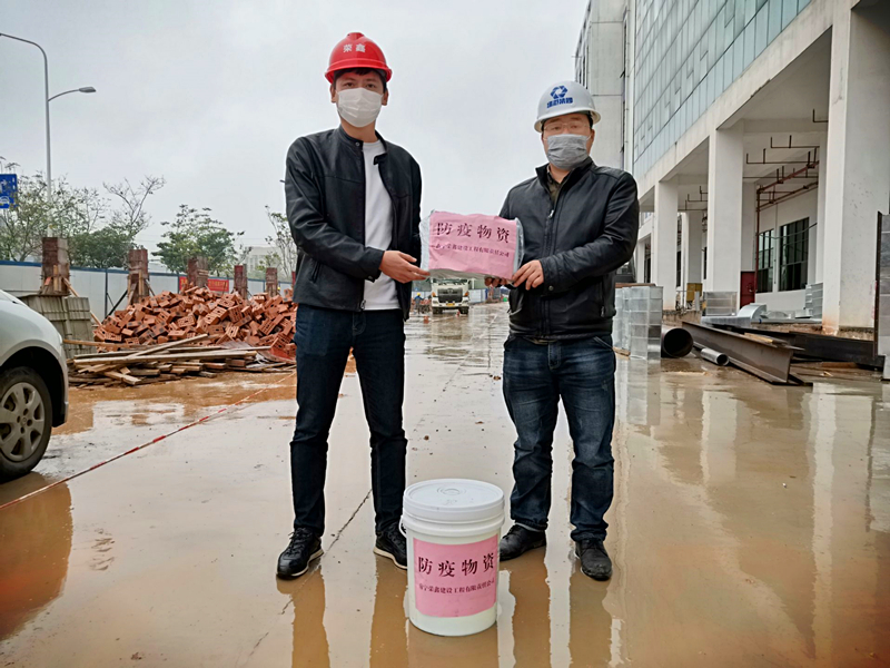 荣鑫公司副总经理黎杰代表公司为项目现场送上防疫物资