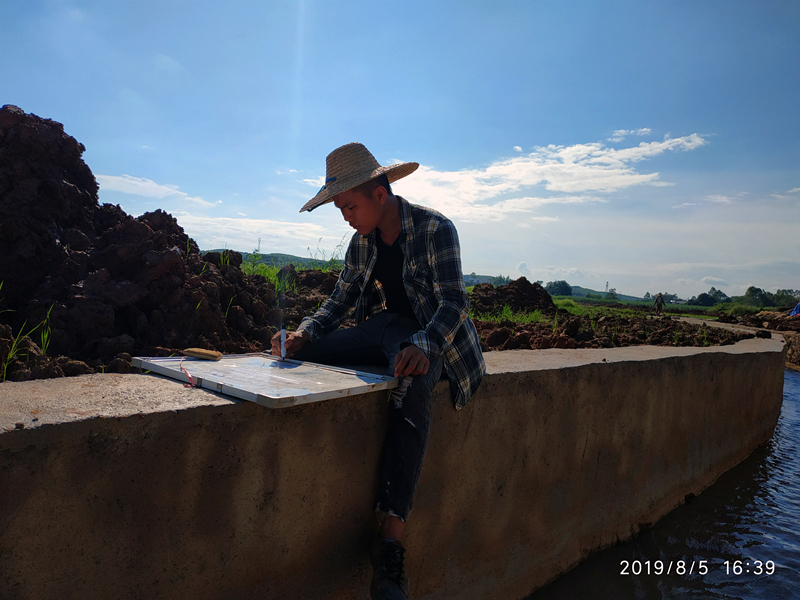 《烈日下的施工员》(荣鑫公司 赵志业)图片说明:拍摄于绿港项目现场。表达施工员职责所在,不怕烈日,戴上一顶草帽奋战在工作一线。