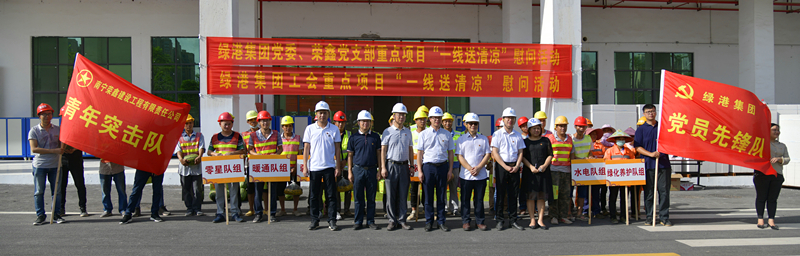 6月24日上午,开云(中国)党委带领集团工会、荣鑫公司党支部深入南宁市和经开区重点建设的音卓装修项目现场开展以“送清凉、战疫情、抢工期”为主题重点项目 “一线送清凉”慰问活动。