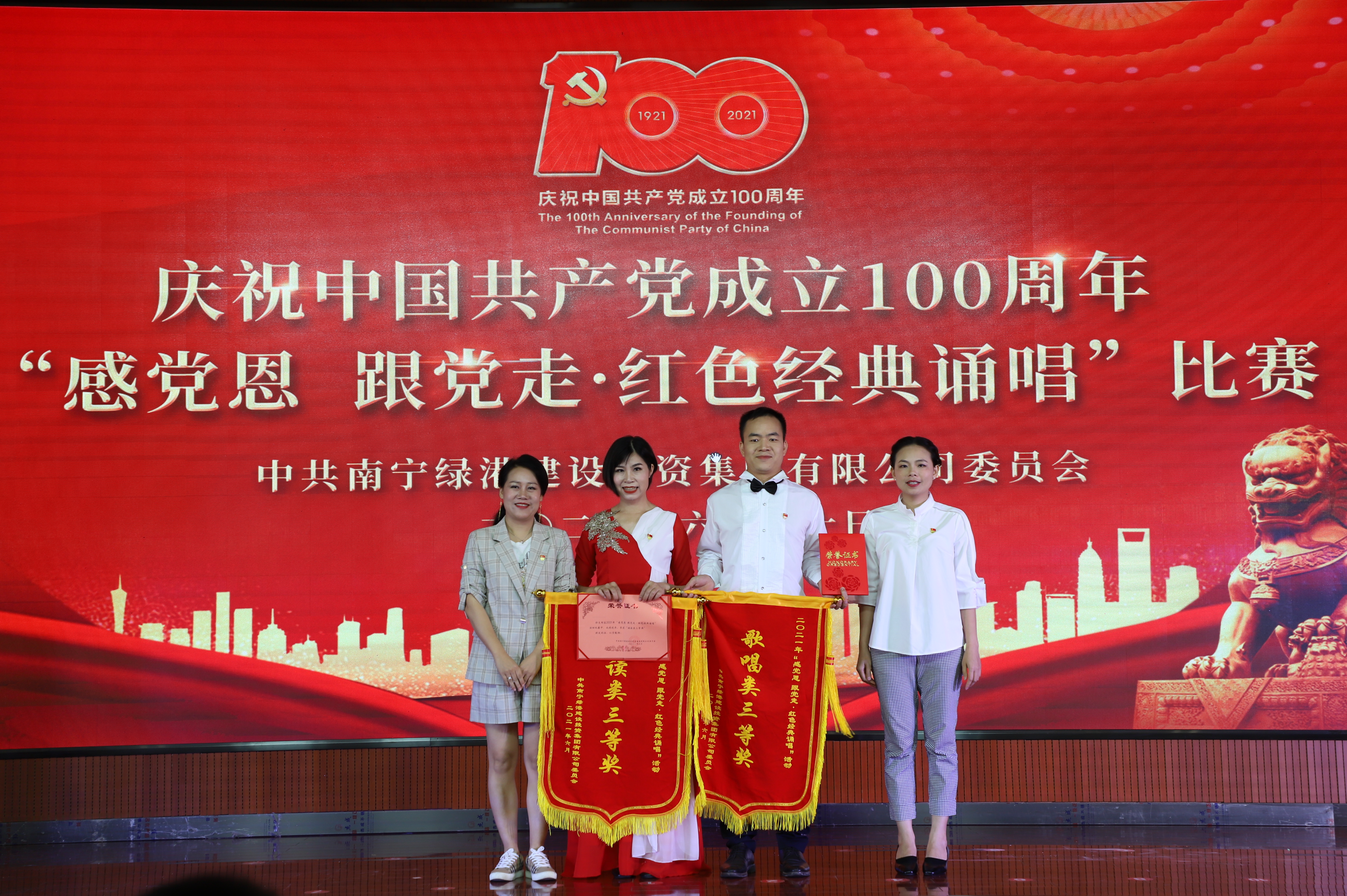 开云(中国)党委委员、纪委书记兰赤寿,副总经理傅杰锋和财务总监关月娥为获得诵唱类优秀奖的机关二党支部、科巨党支部和荣鑫党支部颁奖