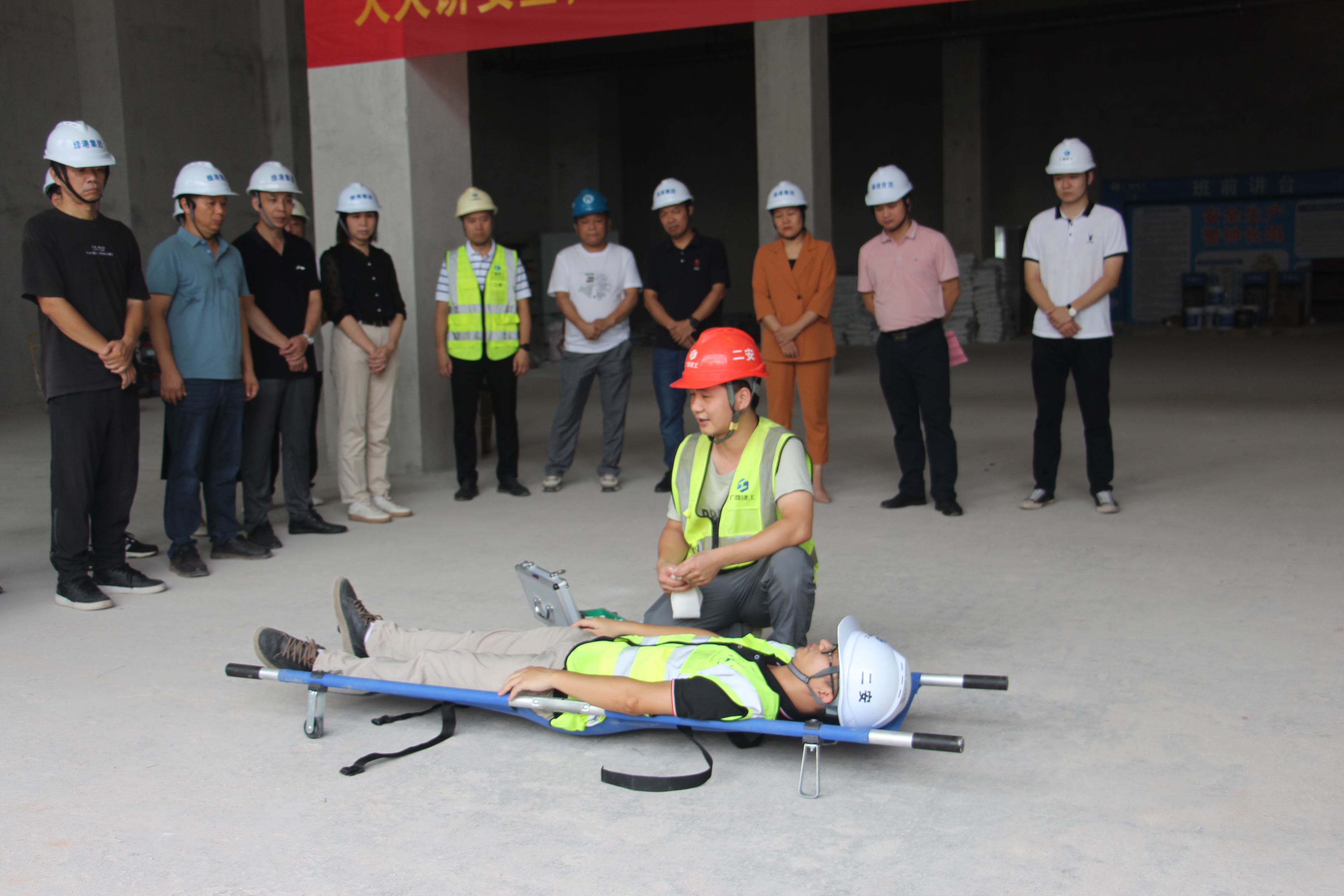 6月20日,嘉通公司在绿港·双创城项目现场2023年“安全月” 救援及消防应急演练活动。双创城项目负责人就高处坠落、物体打击的救援处置和项目火灾应急处置等相关知识进行了讲解。随后,进行了伤口包扎、心肺复苏、医疗急救以及灭火器操作演练。